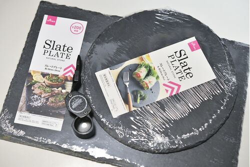 Twitterの石クラスタがまた何か妙なネタを発見したらしく。 「ダイソーのスレートプレートにはパイライトの結晶が見えるらしい」 ということを小耳にはさんだので、近所のダイソーで物色してみる。結論からいうとあった。ギリギリ肉眼で見える…かな? という…